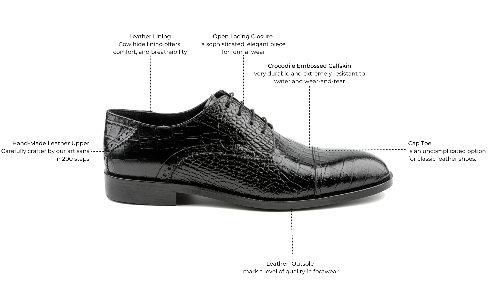 Cap Toe Derby Shoes, Designer Derby Shoes, Crocodile & Iguana Pattern Embossed Calfskin Handmade Dress Shoes for Men, Handmade Leather Sole High Gloss Black Dress Shoes : Taj by Debbano