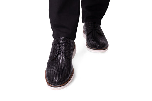 The Derby style shoes are already known to cater to a wide range of foot types, symbolizing comfort by definition in men's dress shoes. When you add to this the flexibility and lightness of EVA soles, designs such as woven styles that not only break from the traditional but also maintain the striking allure of the classic and top-notch hand craftsmanship, beauties like our Debbano Mea series are born.