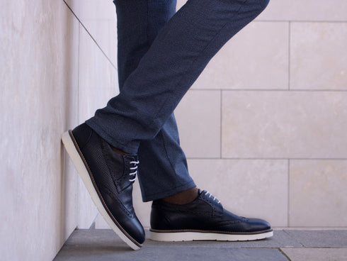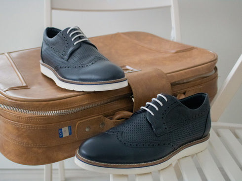 Zio is another hybrid derby in our collection that feels like sneakers. This model seamlessly combines elements of classic wingtip derby shoes with comfortable soles and features a perforated vamp design. Zio effortlessly blends elegance and a sophisticated male stance for spring and summer days, making you ready to face the world. You will love Zio in its shades of navy and brown