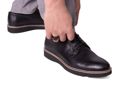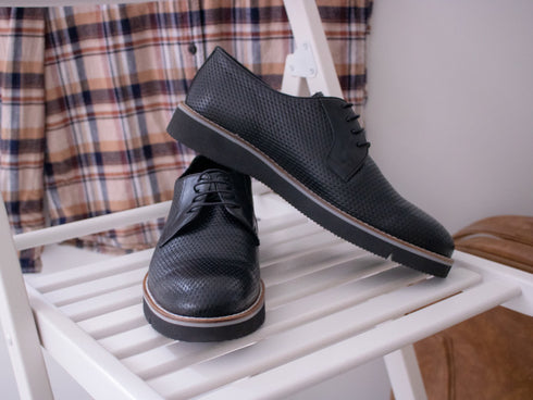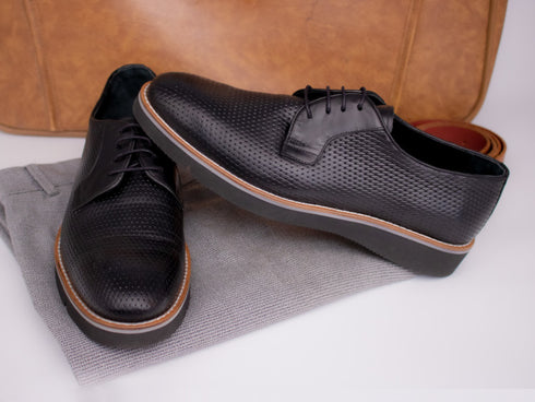 The Fen series Bonded Leather Men's Derby shoes are designed and crafted with a casual comfort mindset for those who prefer more detailed designs than plain derbies. Except for the facing, the entire upper is made of bonded leather embossed with small diamond shapes. The shoes are finished with an EVA sole, known for its shock-proof and flexible properties, to exert less pressure on the ankles and joints.