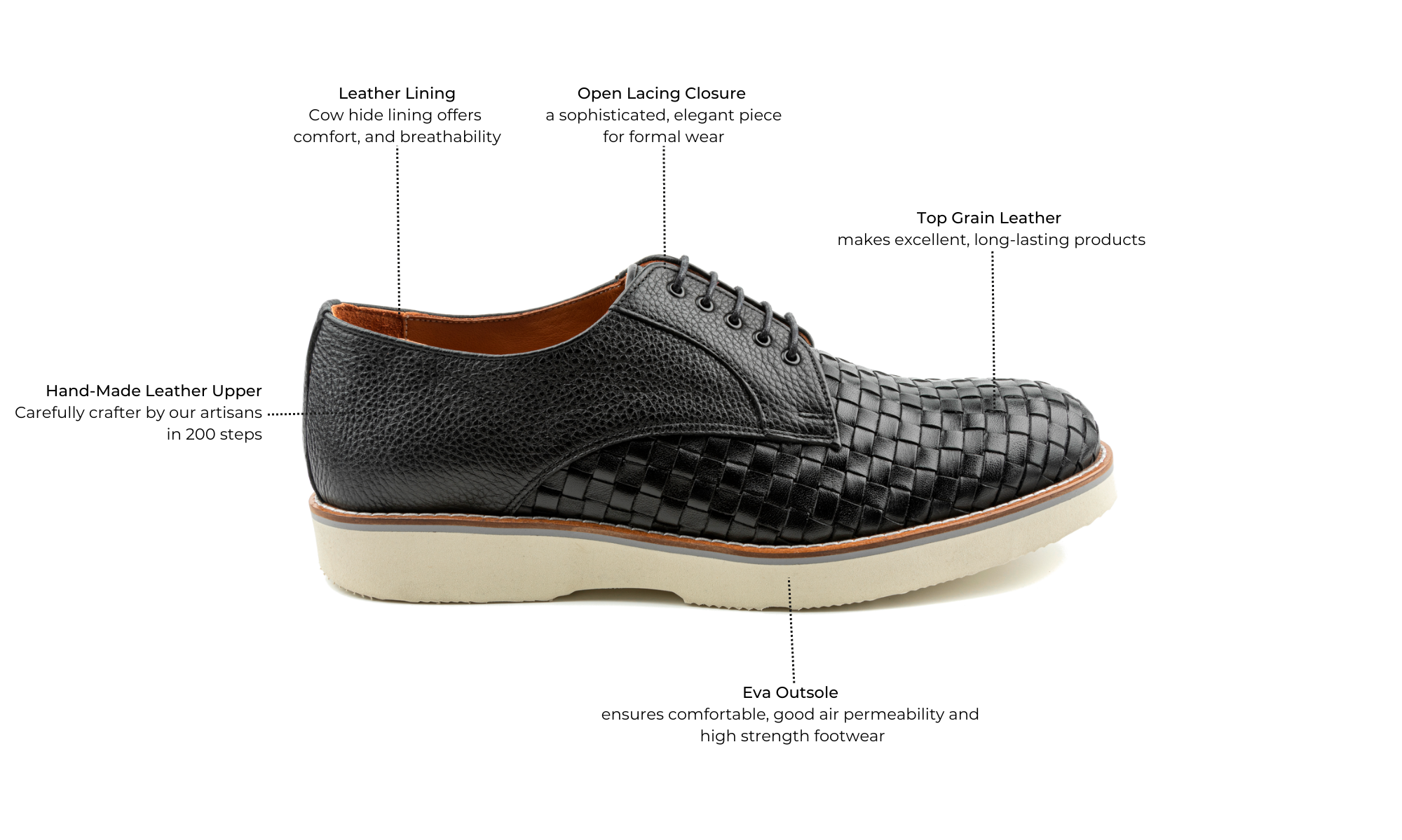 Moe Men's Woven Derby Sneaker, Mix of Top Grain Anilin & Braided Leather, Best Dress Sneakers with EVA Sole and Heels,Black