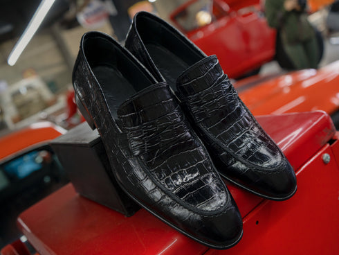 Leder-Loafer mit Alligatormuster für Herren, Penny-Loafer aus Leder für Herren, Mokassin, schwarze Leder-Loafer für Herren: Loy von Debbano