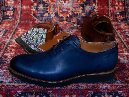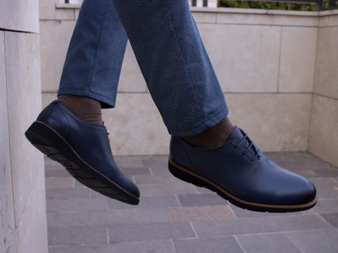 Marineblaue Oxford-Schuhe aus Wholecut-Crust-Leder für Herren