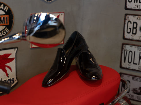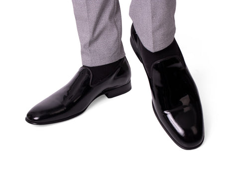 Un impecable zapato de noche para hombre, fabricado íntegramente en charol. Este zapato especial está diseñado para eventos exclusivos como fiestas, galas, bailes, ceremonias, bodas y otras ocasiones sofisticadas de gala. El exclusivo mocasín sin cordones destaca por sus líneas impecables y su artesanía inigualable. La rara combinación de la comodidad de un mocasín sin cordones con un diseño tan elegante y estilizado es verdaderamente excepcional. Adorarás absolutamente nuestro Ibo y recibirás numerosos elogios.