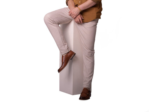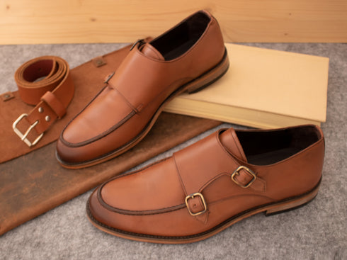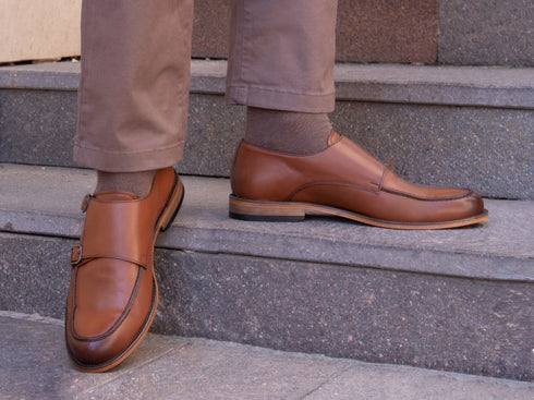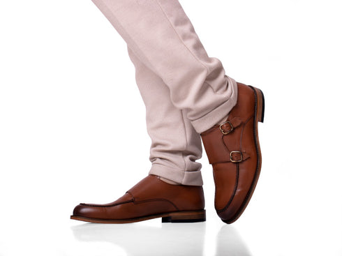 Moc toe design in men's dress shoes, as showcased in our Aba Series, aligns with the broader Americana trend in fashion, celebrating the perfect convergence of tradition and style. The Aba design double monk strap shoes are particularly notable for their supremely smooth and supple top grain leather texture, with a striking gradient transition, especially noticeable in the burnished shade on the toe. This blend of Monk and Moc Toe offers an excellent choice for transitional moments. Pair it with earthy tones like beige, gray, or brown chinos, or opt for a more dressy pants variant, and step out with confidence.